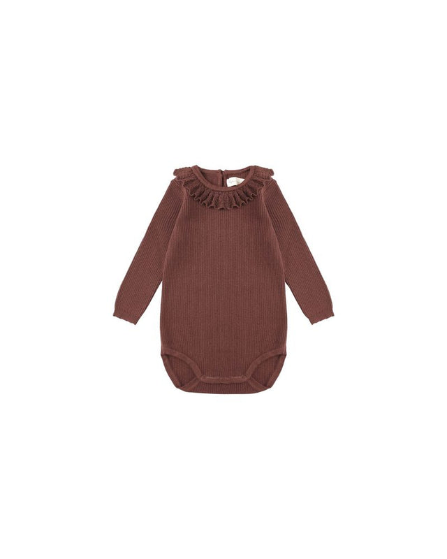 Ruffle Collar Bodysuit || Burgundy by Rylee + Cru - 18/24M is backordered and will ship as soon as it is back in stock.