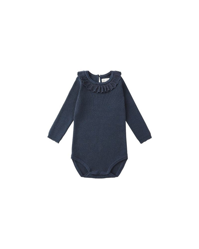 Ruffle Collar Bodysuit || Navy by Rylee + Cru