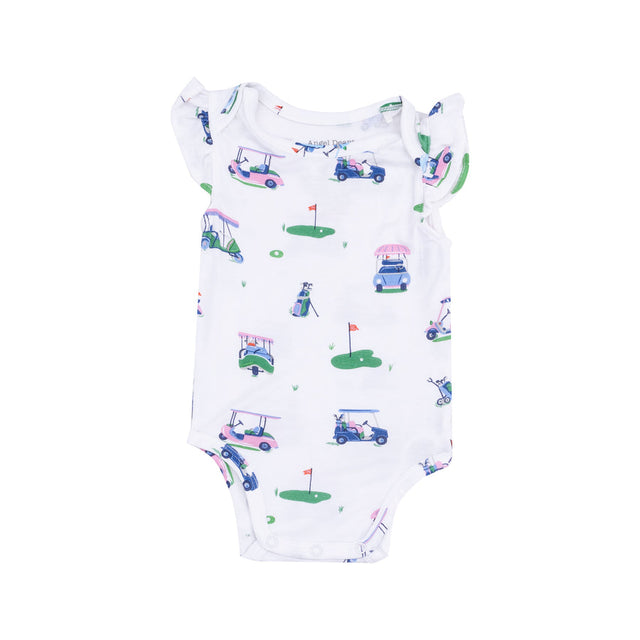 Ruffle Sleeve Bodysuit - Vintage Golf Carts Pink by Angel Dear - 0/3M is backordered and will ship as soon as it is back in stock.