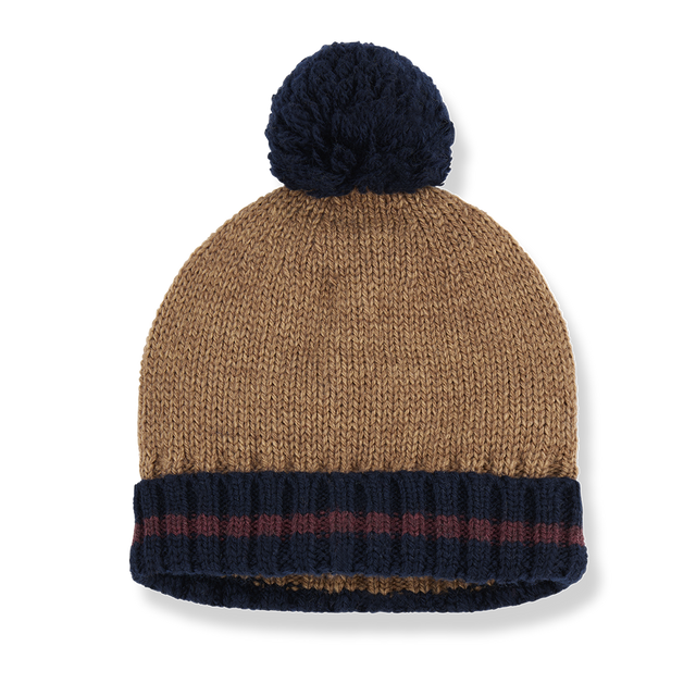 The Brian College Beanie from 1+ in the Family. Classic ribbed knit beanie with a soft fold-over cuff. Finished with a fluffy pom-pom on top.