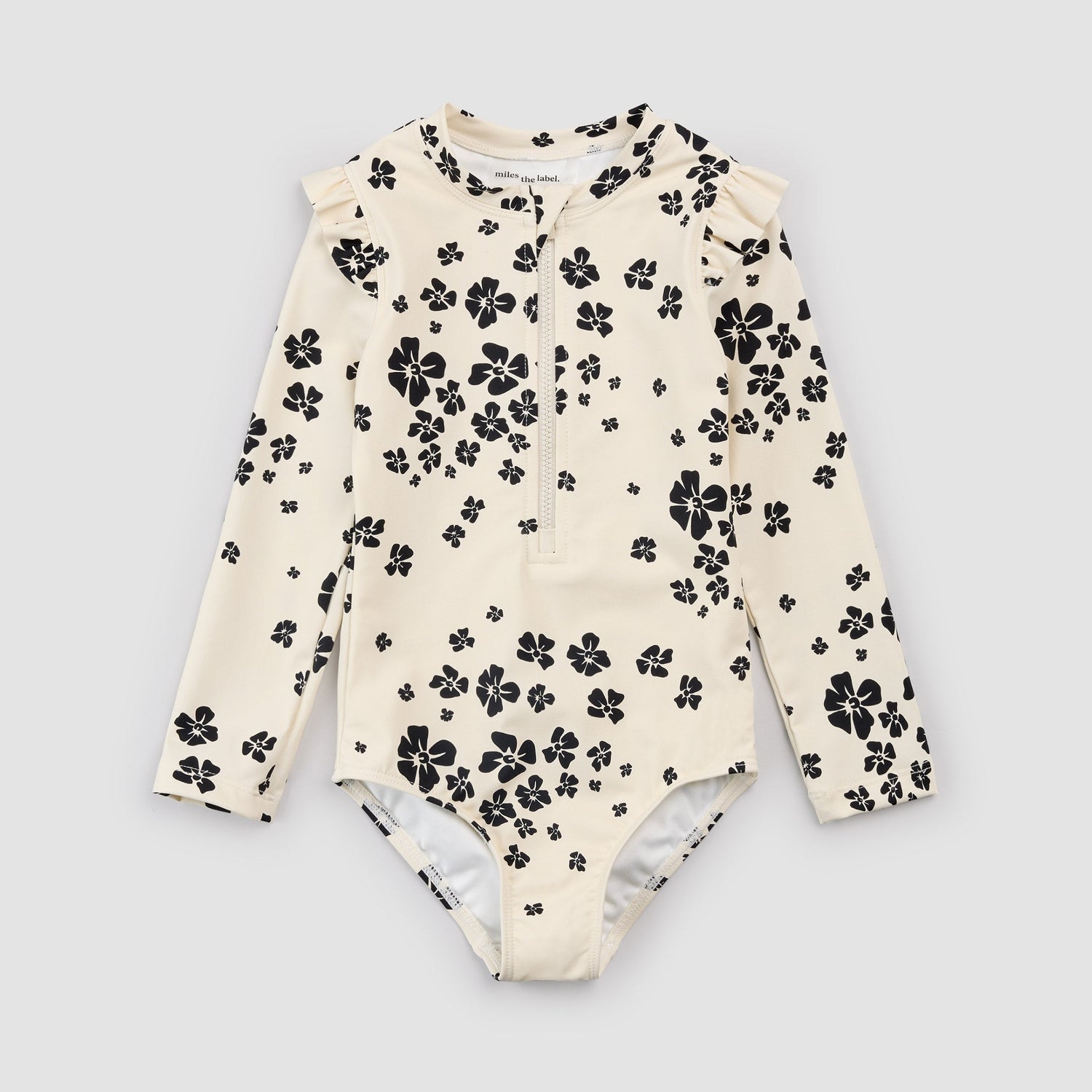 Flowers Print on Beige L/S Swimsuit by miles the label