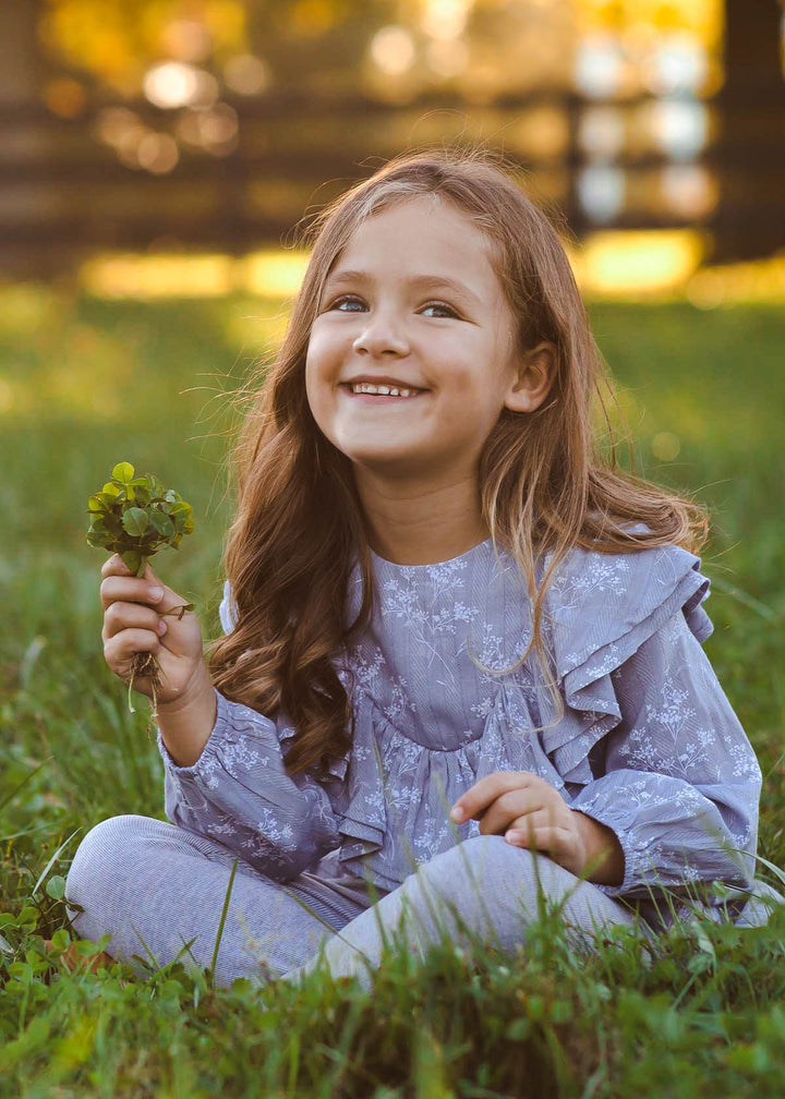 A whimsical, wildflower print, and the beautifully soft fabric makes this outfit a favorite! A double ruffle flows from front and over shoulders to back for a perfect "little girl" look. Top is fully lined and has a two-button opening in back. Leggings complement the pretty look.