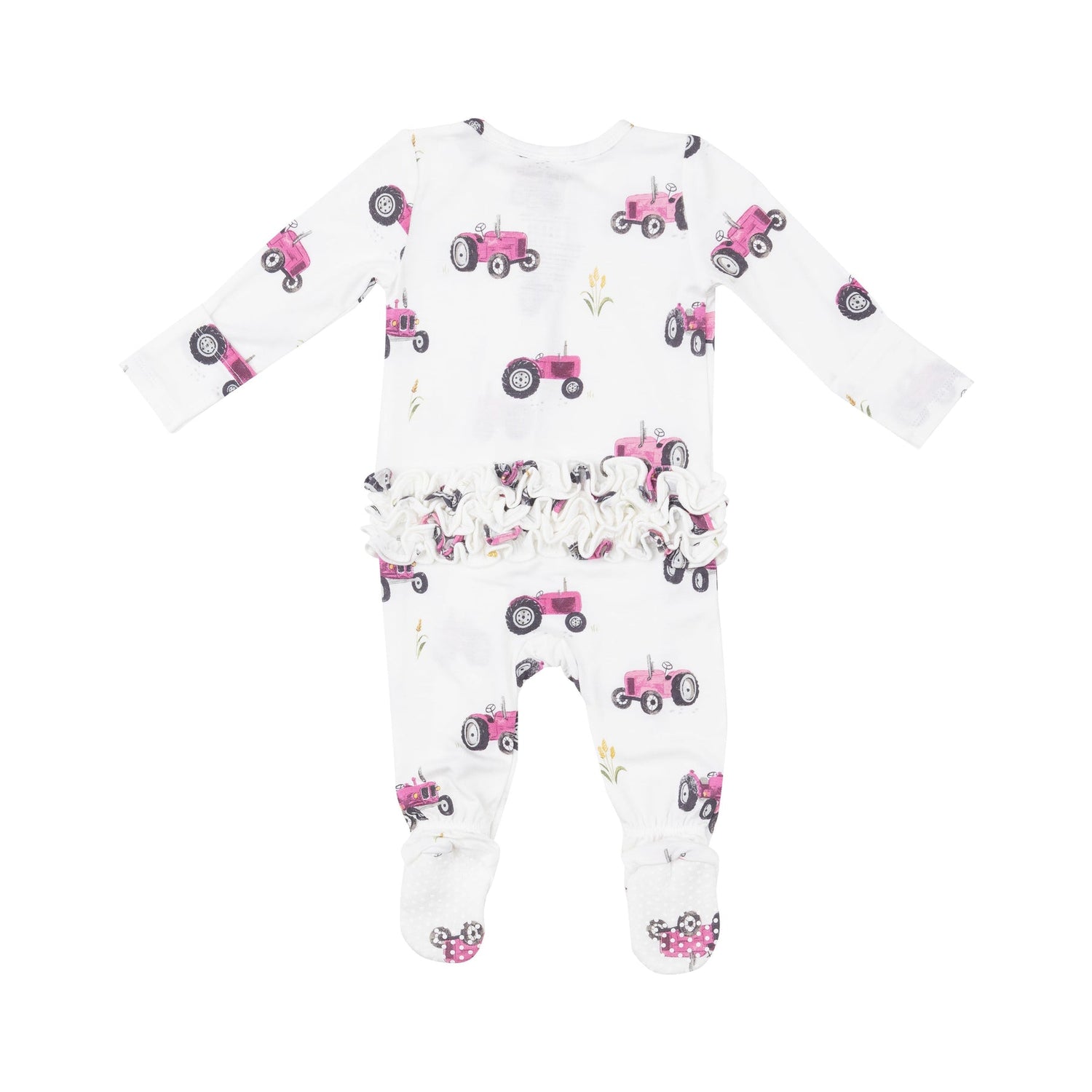 2-Way Zipper Ruffle Back Footie - Pink Tractors by Angel Dear