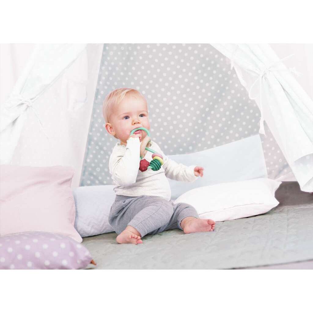 This great infinity symbol bead maze is a fantastic way to help your little ones develop their early life skills as they play. Slide the differently-textured beads and discs along the infinity symbol bead maze or simply explore the soft, smooth, textures for a wonderful sensory experience! Features a ring of smooth wood, gently textured infinity symbol track, two rubbery, embossed beads and two discs. Great for encouraging tactile development and hand-eye coordination as well as developing fine motor skills. Suitable for 0M and above.