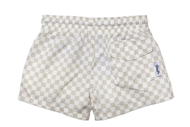 Our Swimmies are styled after a more euro-fit. Meaning, the length of the shorts will land anywhere between a little above the knee to mid-thigh-ish (depending on the length of the child). It is designed this way--its our style!