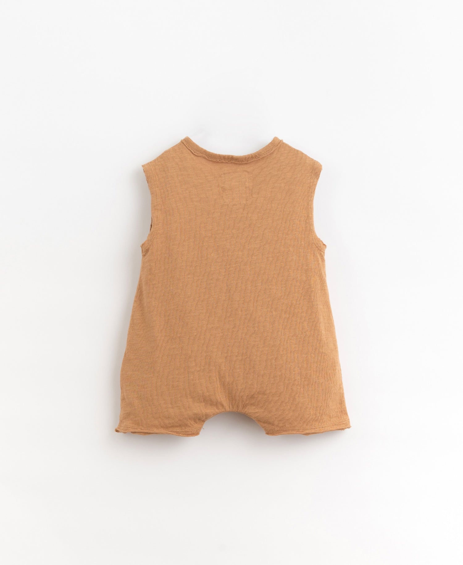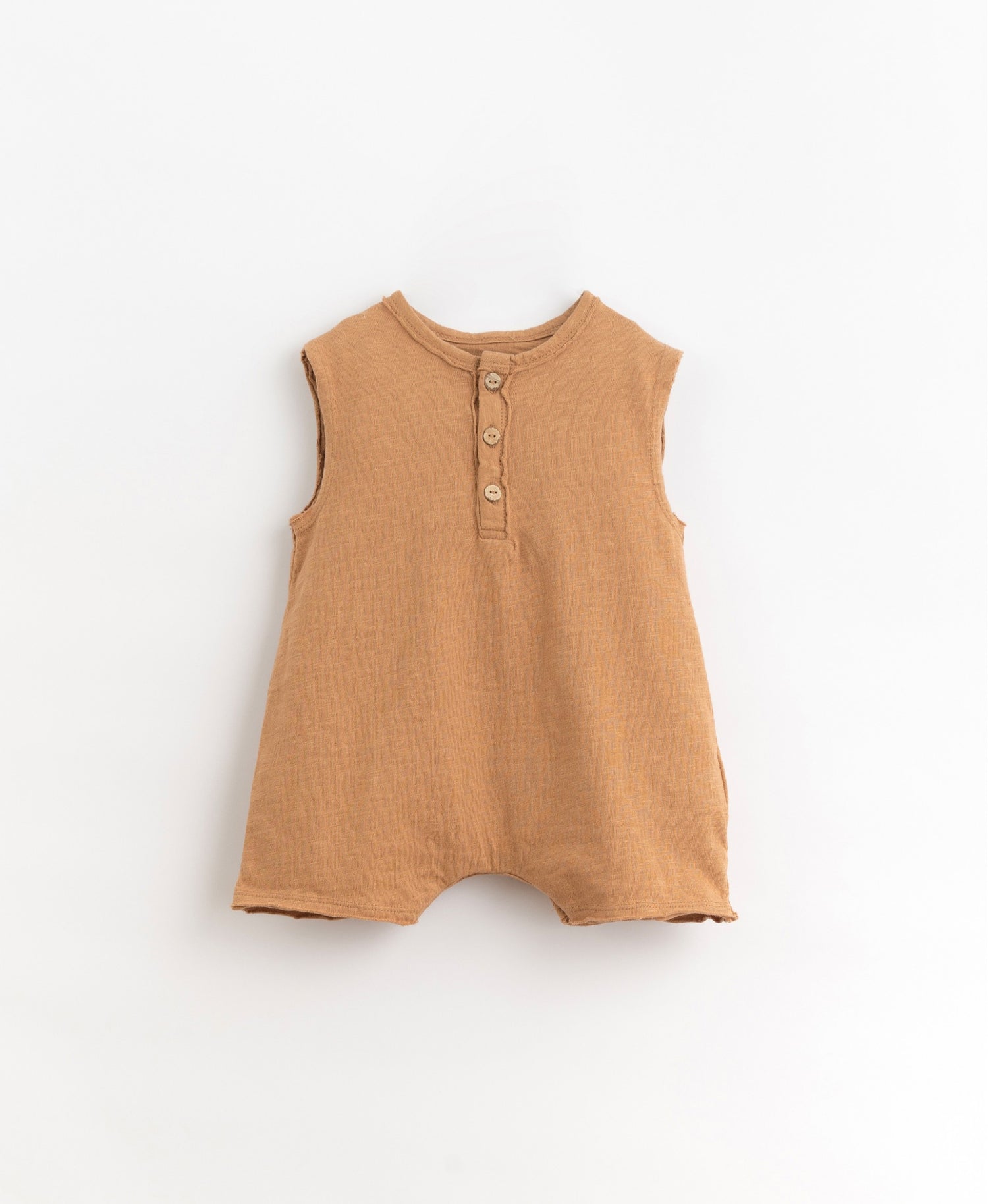 This jumpsuit is made of jersey stitch organic cotton, Tea Tree color. This sleeveless model has a round neck, an opening on the front with coconut buttons and a crotch opening with nickel-free metal clips (crotch opening up to size 18M). The organic fibres used in this garment are GOTS (Global Organic Textile Standard) certified - one of the textile industry's most important standards that sets strict criteria for social, environmental and safety at work principles throughout the production chain. All raw materials used in this garment are certified to Standard 100 by OEKO-TEX, Class I and have been tested for substances that can harm children's skin.