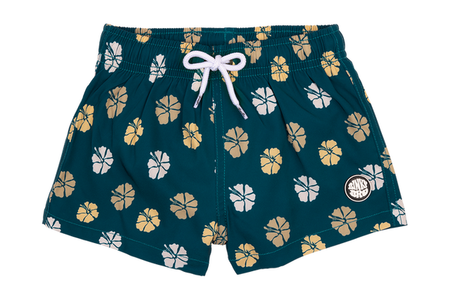 Our Swimmies are styled after a more euro-fit. Meaning, the length of the shorts will land anywhere between a little above the knee to mid-thigh-ish (depending on the length of the child). It is designed this way--its our style!