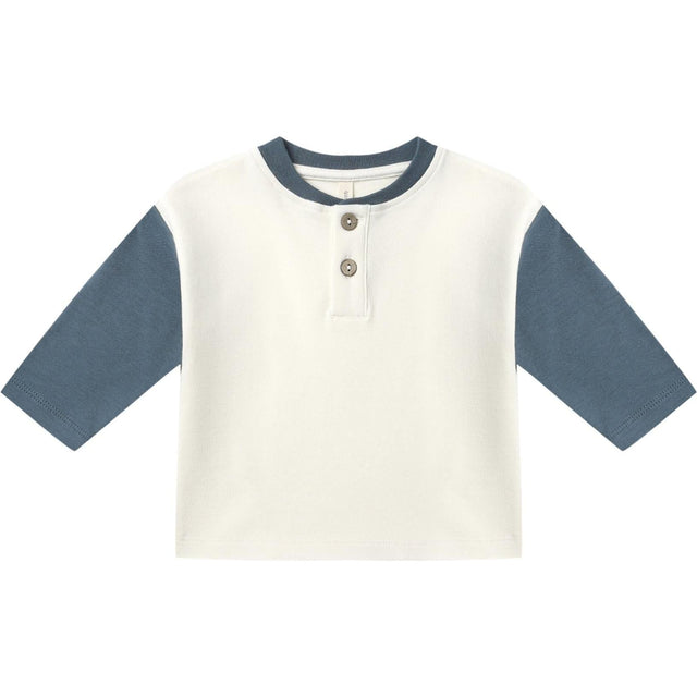 Quincy Mae Long Sleeve Henley Tee || Ocean - 3/6M is backordered and will ship as soon as it is back in stock.