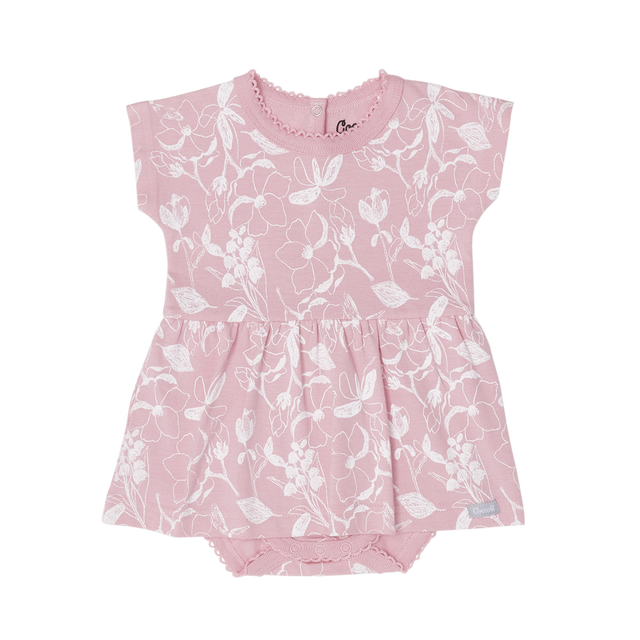 Skirted Romper in Flowers on Silver Pink by Coccoli