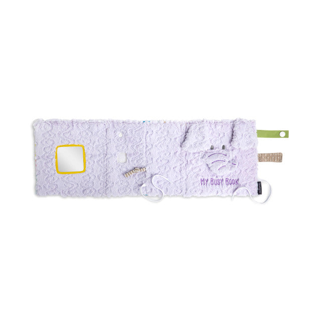 Keep babies 0-12 months entertained with the purple Buckle and Snap Busy Book - Elephant. With textures, characters and various accessories, this activity book is sure to be a playtime favorite.