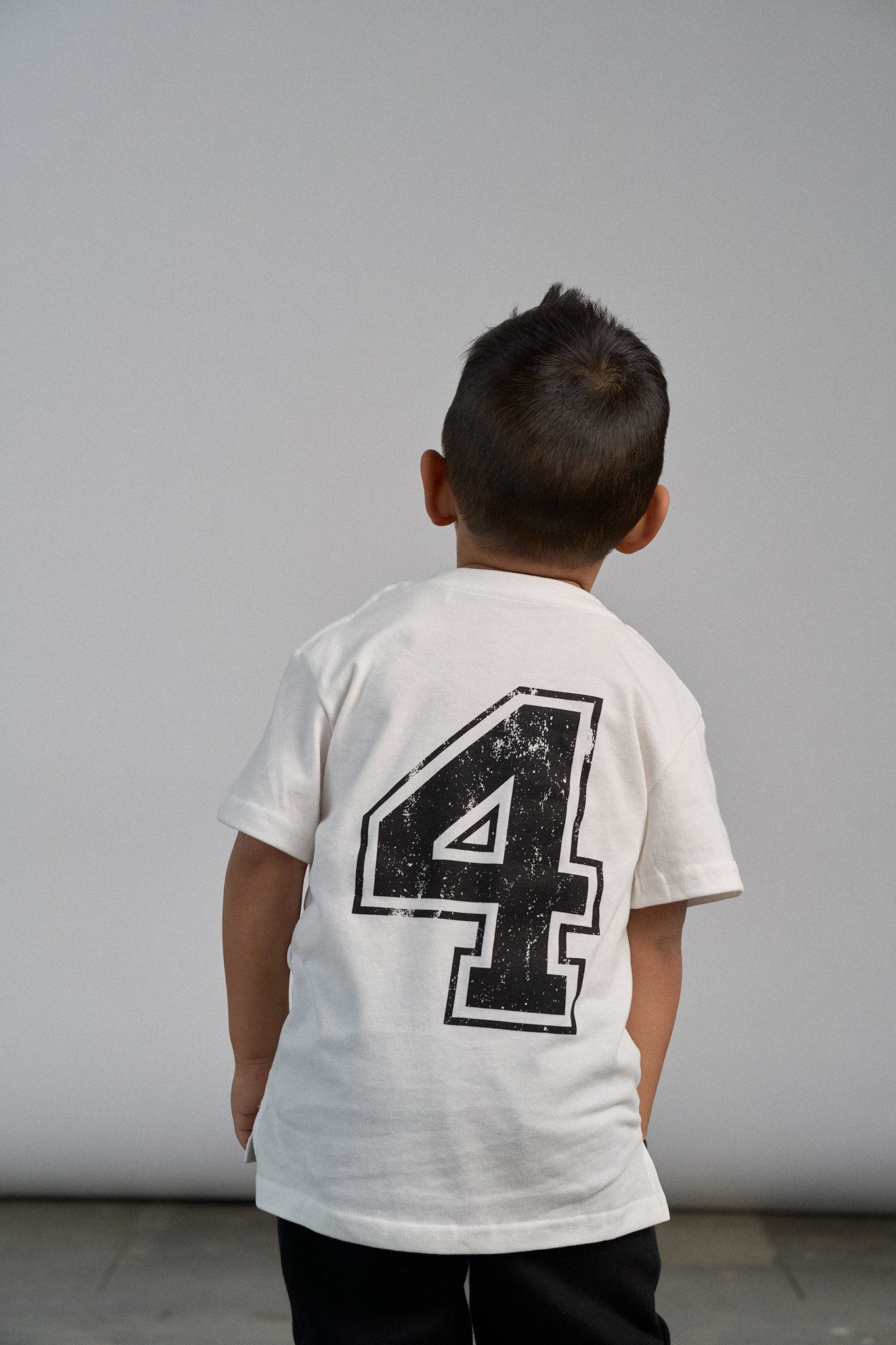 Celebrate your little one’s special day in style with our Birthday Tees in classic black and white! These fun, high-quality shirts with a bold number on the front and back are the perfect way to mark any birthday milestone. Made from soft, breathable cotton, they offer all-day comfort for your birthday boy or girl. Whether you're planning a party or just looking to make their big day extra special, these tees are the perfect addition to the celebration. Easy to pair with jeans, shorts, or skirts, they’re a timeless choice for every birthday!
