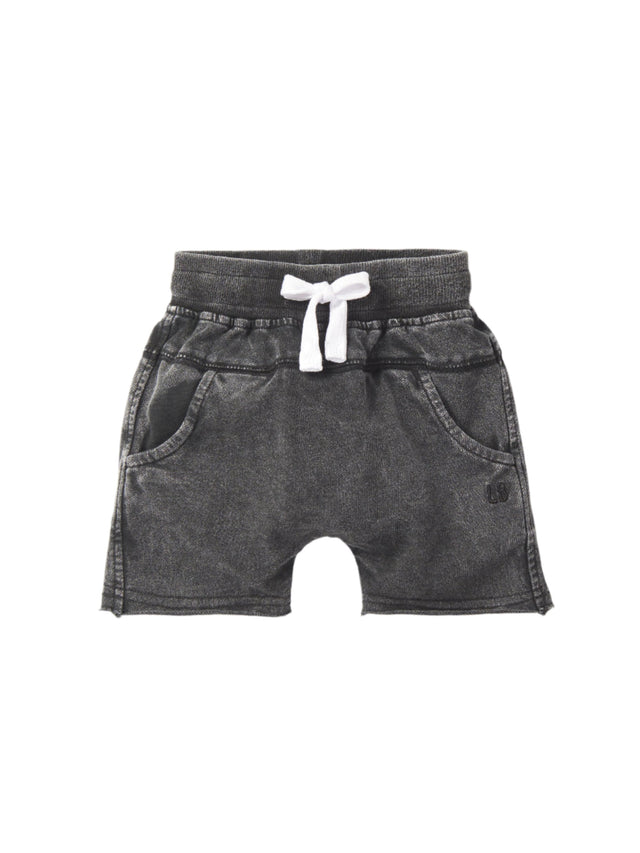 Acid Wash Raw Edge Harem Short- Black by Little Bipsy - 0/3M is backordered and will ship as soon as it is back in stock.