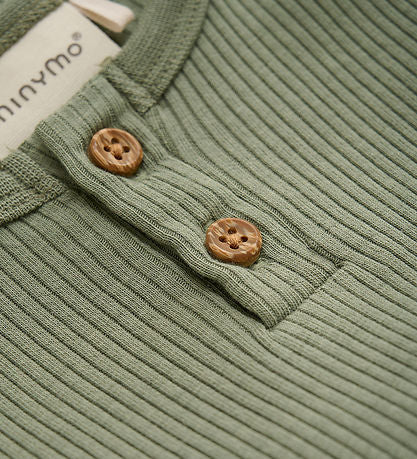 Delicious Minymo bodysuit in a beautiful green shade with a nice rib structure with short sleeves and button closure at the front. This bodysuit from Minymo is both stylish and practical for the little ones.