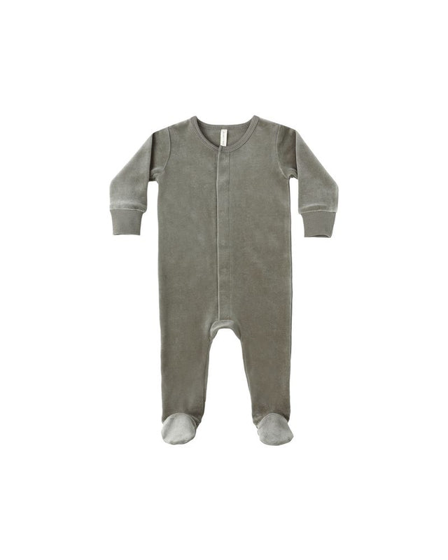 Long sleeve snap footie with hidden snap front placket in our velour fabric.