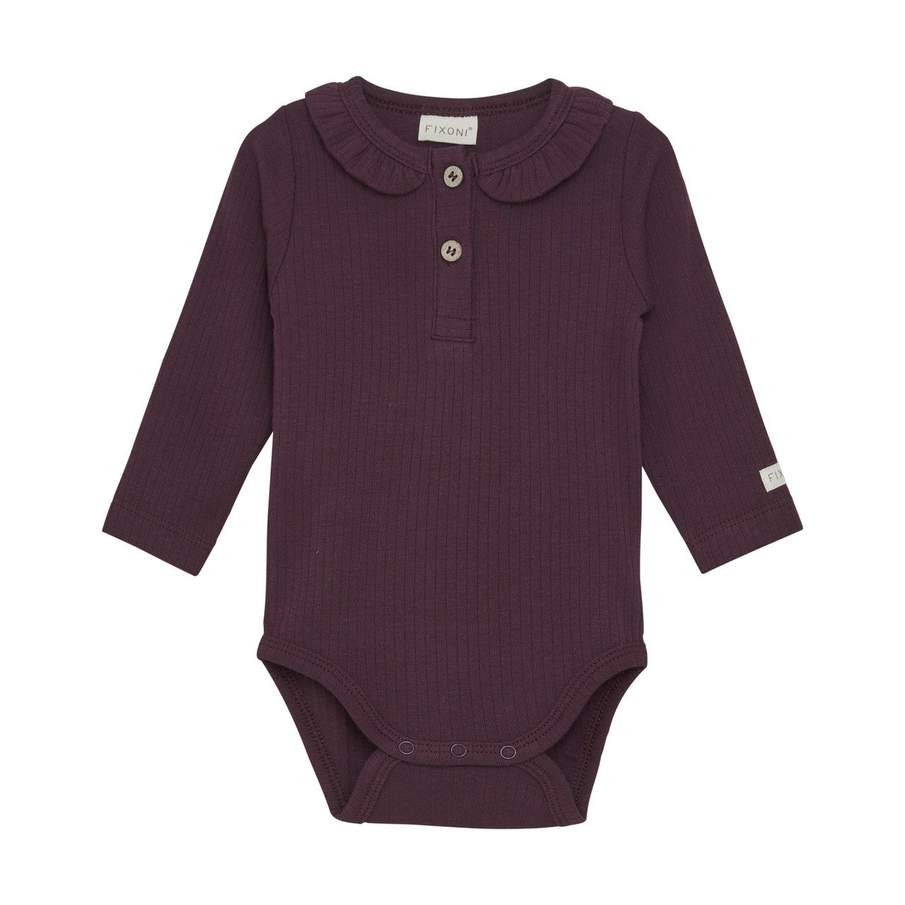 Long Sleeve Ribbed Bodysuit- Grape Wine by Fixoni - NB is backordered and will ship as soon as it is back in stock.