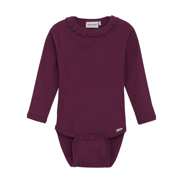 Long Sleeve Ribbed Bodysuit- Raspberry Coulis by Minymo