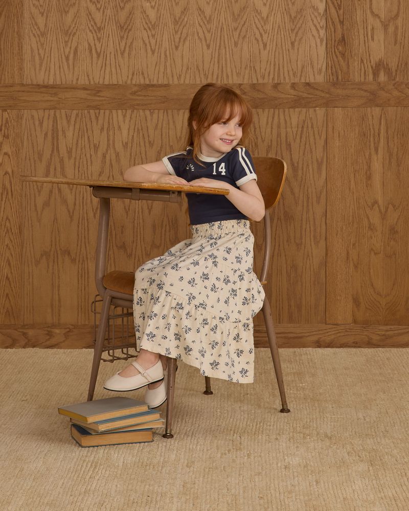 Ruffle Tiered Midi Skirt || Blue Floral by Rylee + Cru - 2/3T is backordered and will ship as soon as it is back in stock.