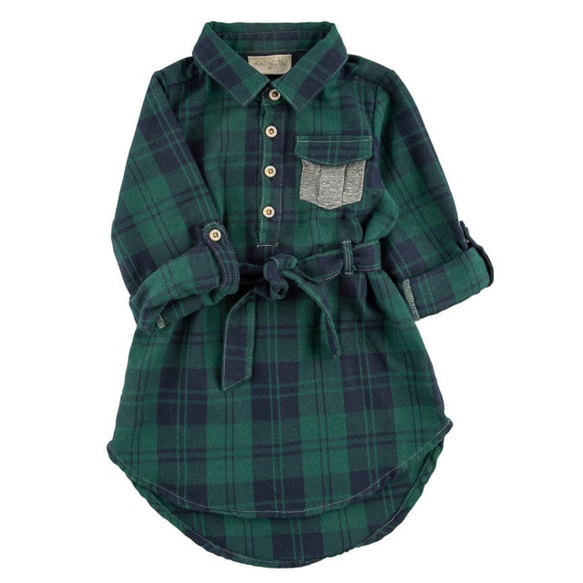 The perfect plaid button up dress to wear on its own or pair with their favorite jeans, leggings, or joggers. A casual fitting button down with belt at waist, this stylish outfit is sure to be their new Fall favorite!