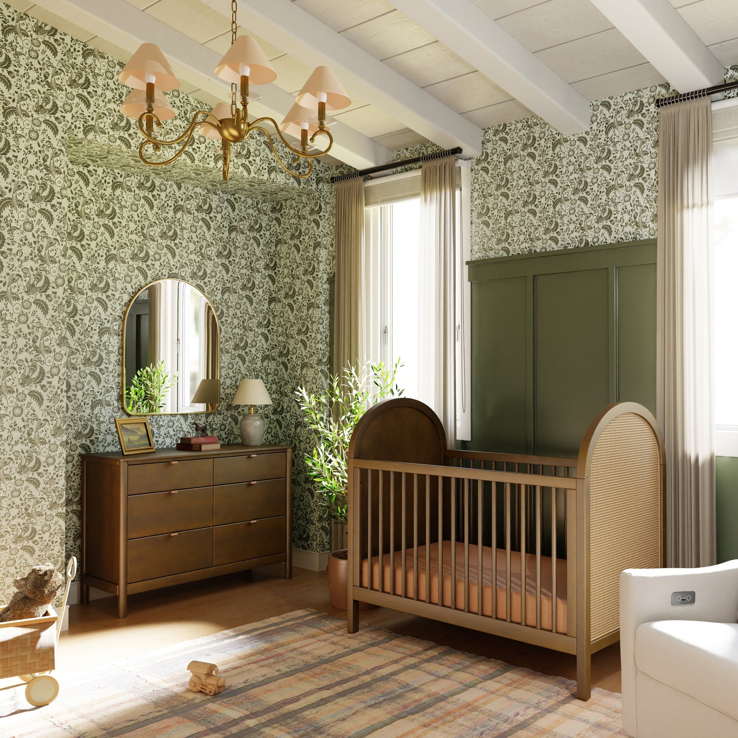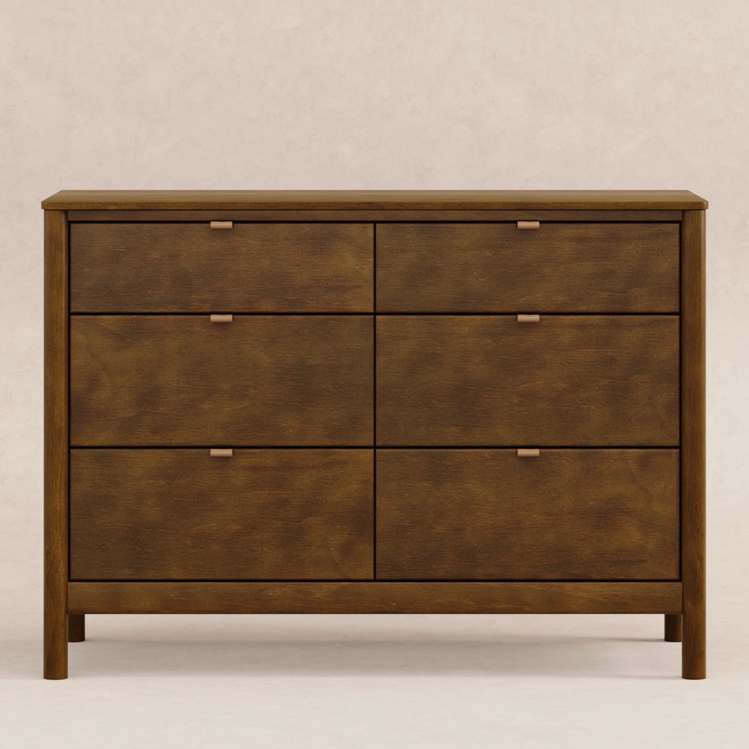 The simple yet sophisticated Bondi 6-Drawer Assembled Dresser complements both the Babyletto Bondi Cane 3-in-1 Crib and the Bondi Boucle 4-in-1 Crib with its warm wood finish and tonal vegan leather drawer pulls, rounded posts and minimalist silhouette. It's designed for the nursery with spacious smooth-glide drawers, included anti-tip kit for safety, and best-of-all it arrives fully assembled, ready out of the box.