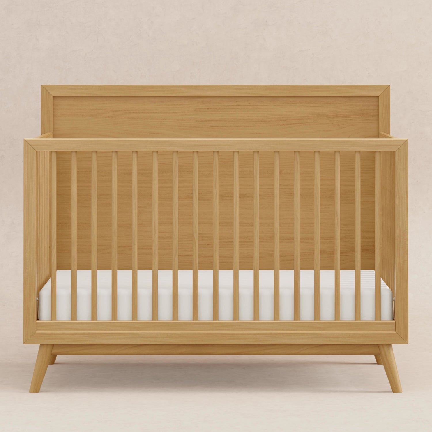 The Palma 4-in-1 Convertible Crib is the ultimate centerpiece to a stylish mid-century nursery. The Palma grows with your babe with an included toddler bed conversion kit allowing you to seamlessly convert from crib to toddler bed to daybed. And with a high headboard, it can transition into a timeless piece with an additional full-size bed conversion. Made with sustainable materials and GREENGUARD Gold certified for indoor air quality.