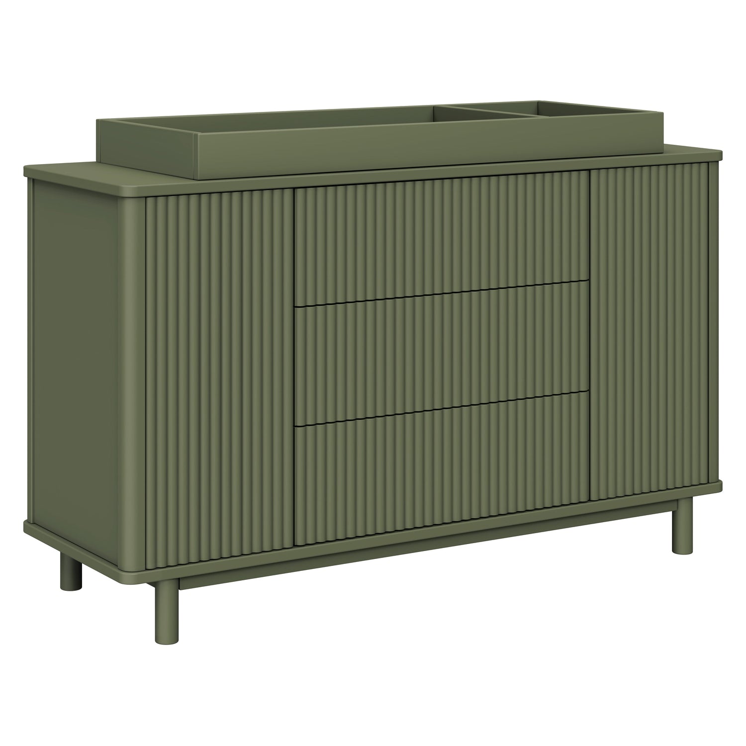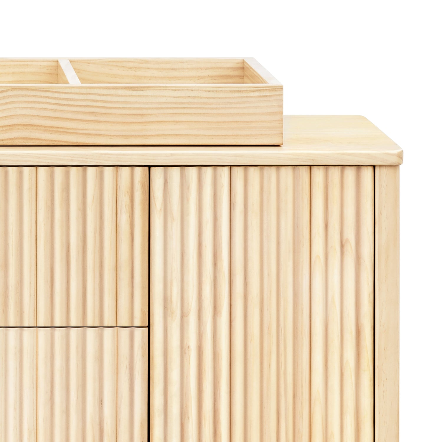 Convert your dresser into a convenient changing table with the Universal Wide Removable Changing Tray. The changing tray comes with a smaller compartment to keep baby changing necessities close at hand. As child outgrows its functionality as a changing station, the tray and included safety brackets can be easily removed to reclaim the space on top of the dresser.