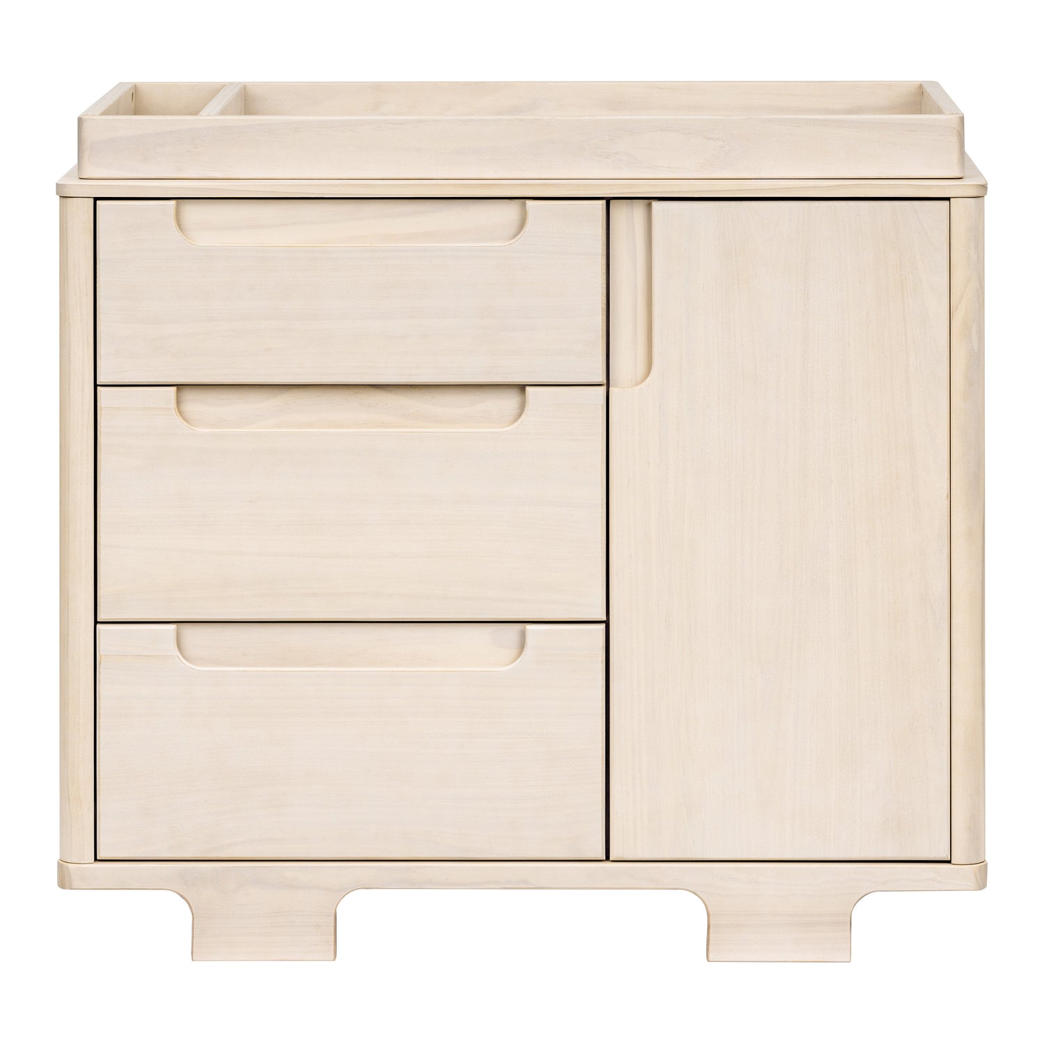 Designed to complement the Yuzu 8-in-1 All-Stages Crib, the Yuzu 3-Drawer Changer Dresser marries form and function with playful arched feet, gently curved corners, included changing tray, and plenty of storage with 3 drawers and 1 spacious cabinet. Whether you're going for a classic, modern, or eclectic look, this versatile dresser is a perfect statement piece in the nursery.