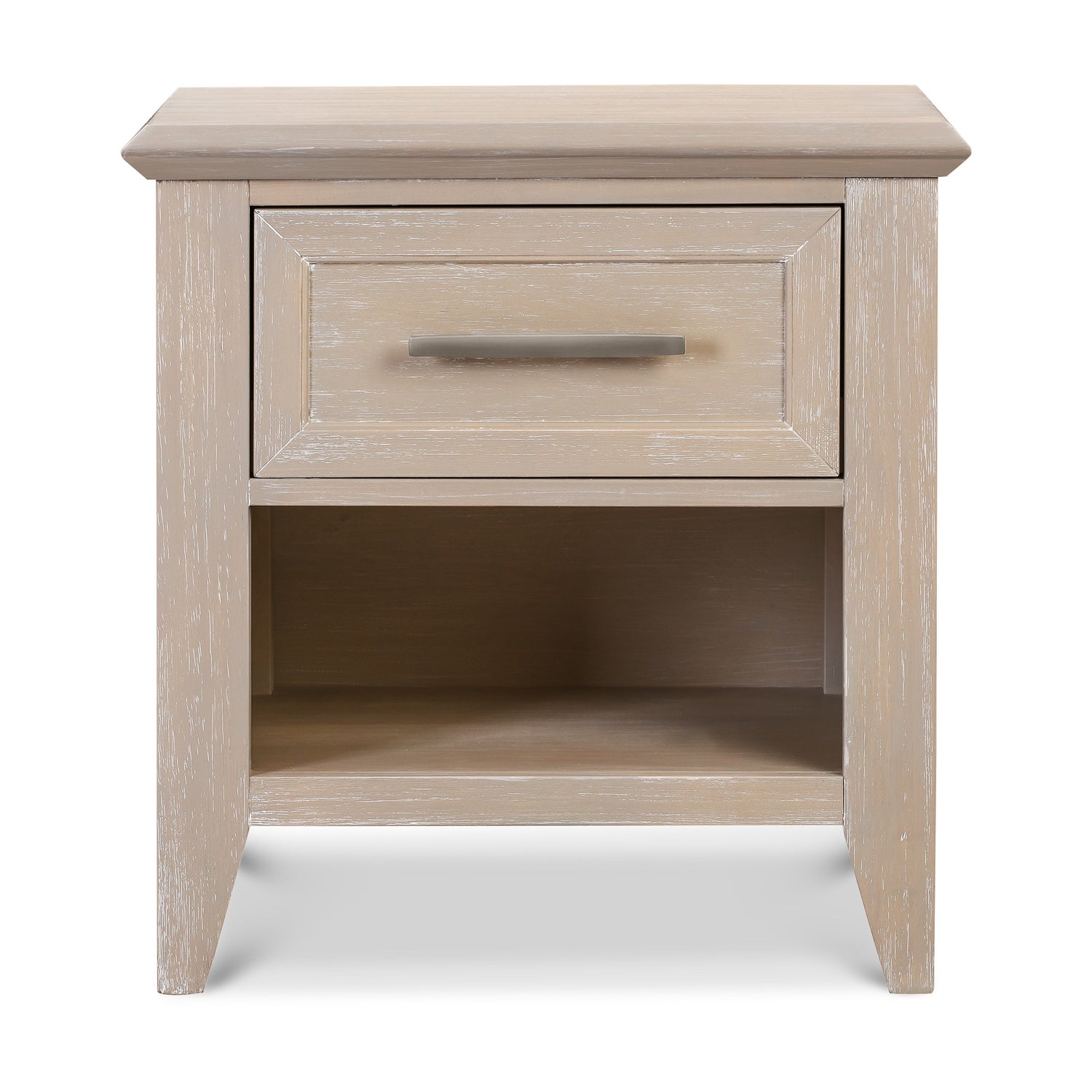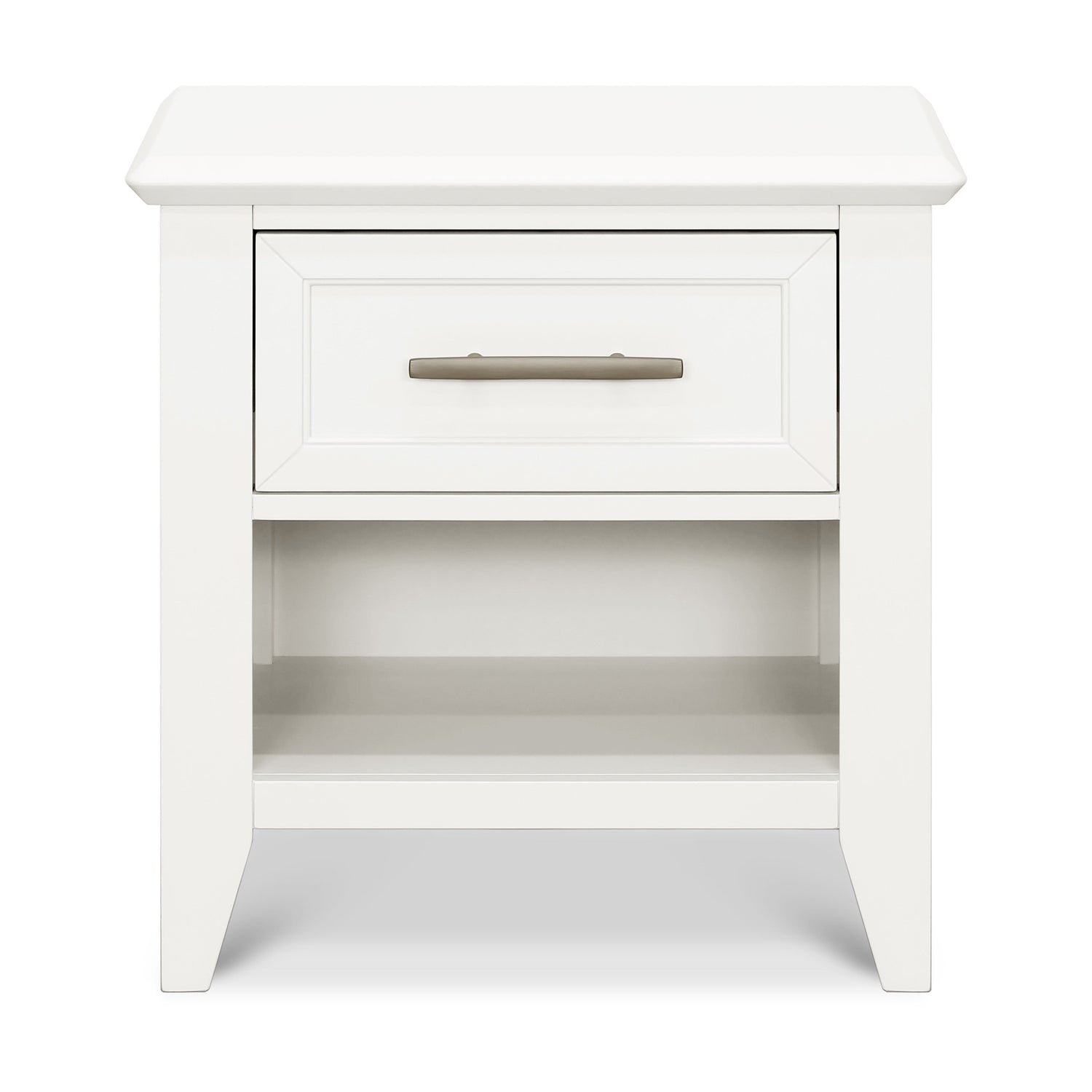 The Beckett Nightstand features the same simple tapered feet and contemporary 45 degree trimming to complement the Beckett 4-in-1 Crib and Beckett 6-Drawer Dresser. With its raised drawer panel molding and an open shelf for extra storage, the Beckett is a transitional piece fit for any setting. The dovetail construction drawer is fully extendable with self-closing, ball bearing glides.