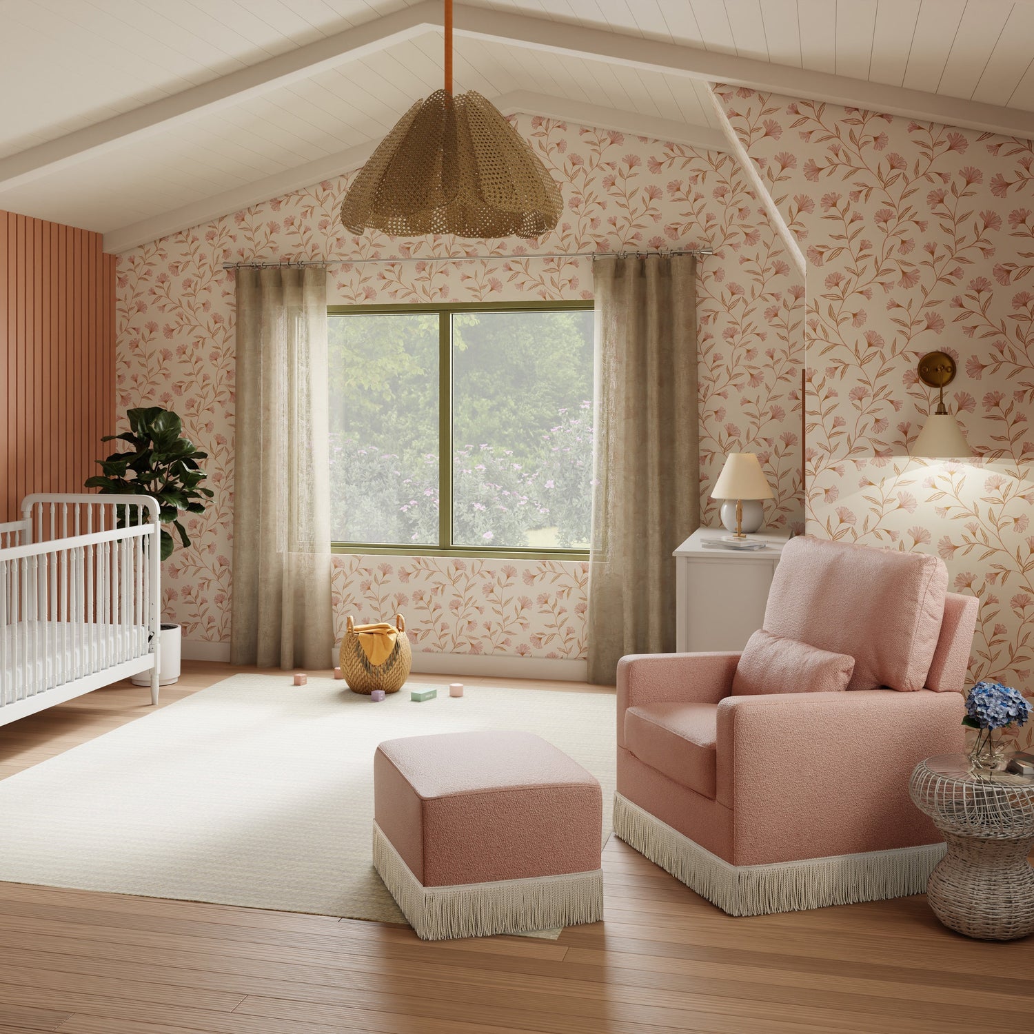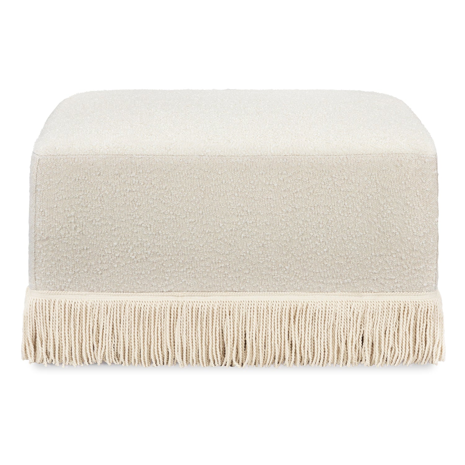 Namesake Crawford Gliding Ottoman | Boucle with Tassel Fringe - Ivory Boucle with Ivory Tassel Fringe is backordered and will ship as soon as it is back in stock.
