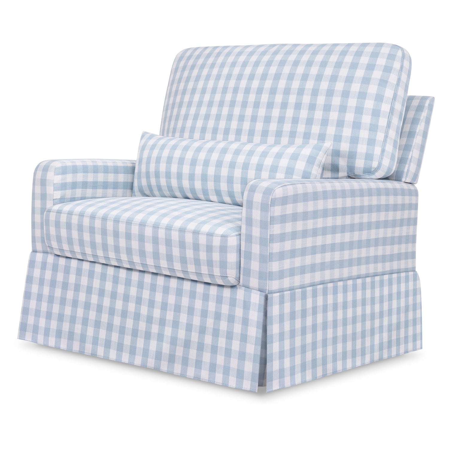 Our best-selling Crawford Glider has been reimagined to fit more than one with its extra wide seat – perfect for nursing twins or cuddling up with your toddler. This glider offers a modern take on traditional slipcover style and brings nursery comfort to a new level with its plush pillowback design, added lumbar pillow, and 30” wide seat. Its smooth, back-and-forth gliding motion helps you rock your baby to sleep with ease, while the convenient swivel creates an inviting repose for both you and your baby.