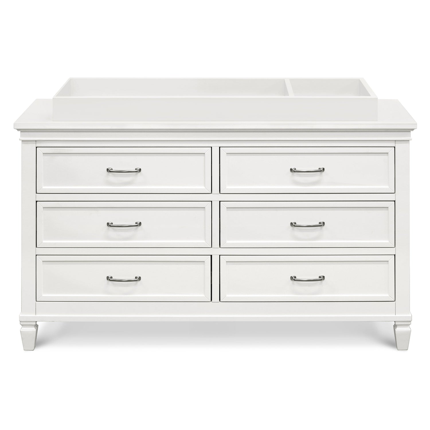 Bring the elegance of romantic French country inspired style into the home with the Darlington 6-Drawer Dresser. The dresser balances classic raised molding on six drawer fronts, delicate tapered feet, and accent satin nickel drawer handles. All spacious drawers feature dovetail construction with self-closing, ball-bearing drawer glides. Available in a Warm White finish.