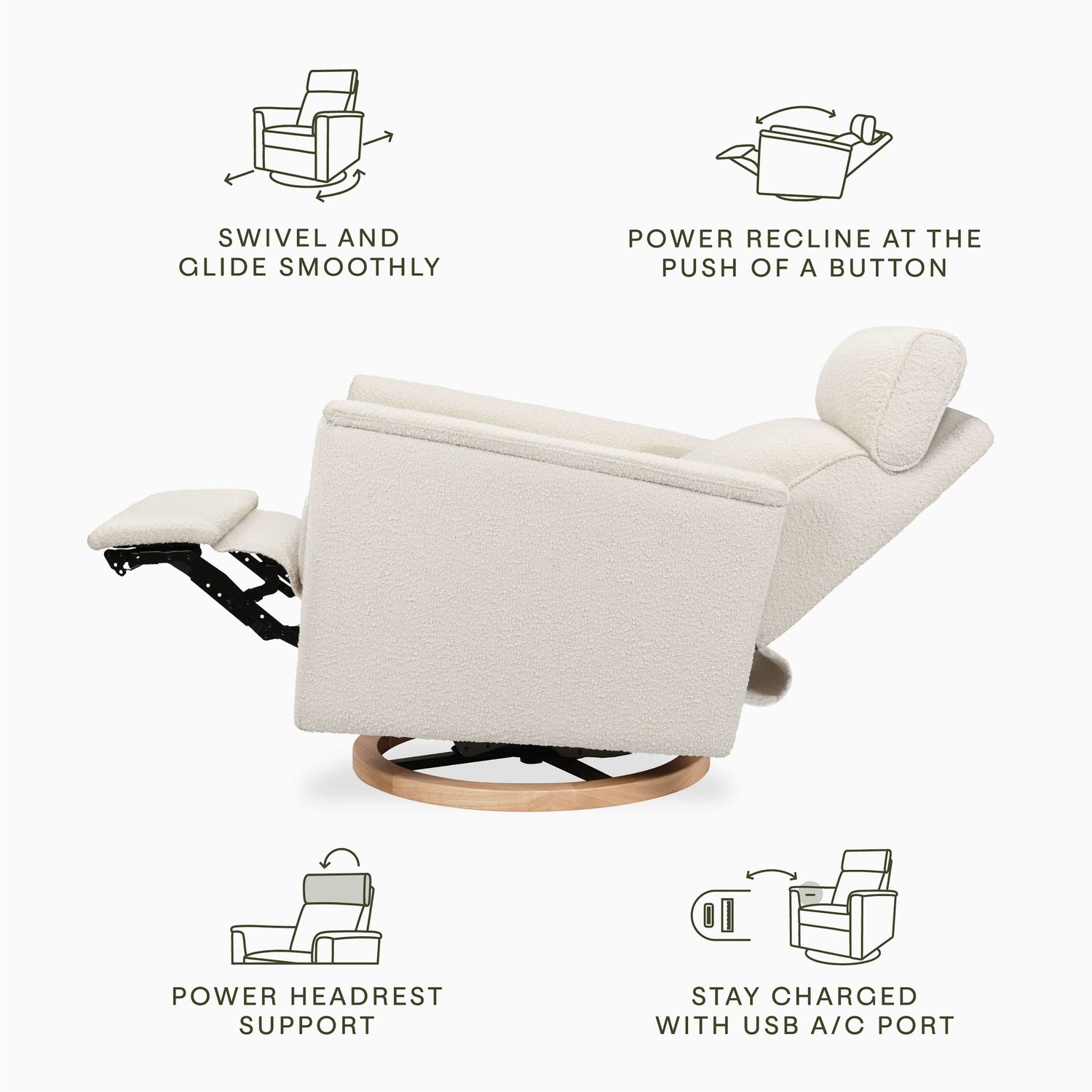 - POWER RECLINER + POWER HEADREST: Smooth and quiet reclining mechanism lowers headrest and raises footrest effortlessly with the push-button control panel. Electronically adjust the headrest for your optimal comfort