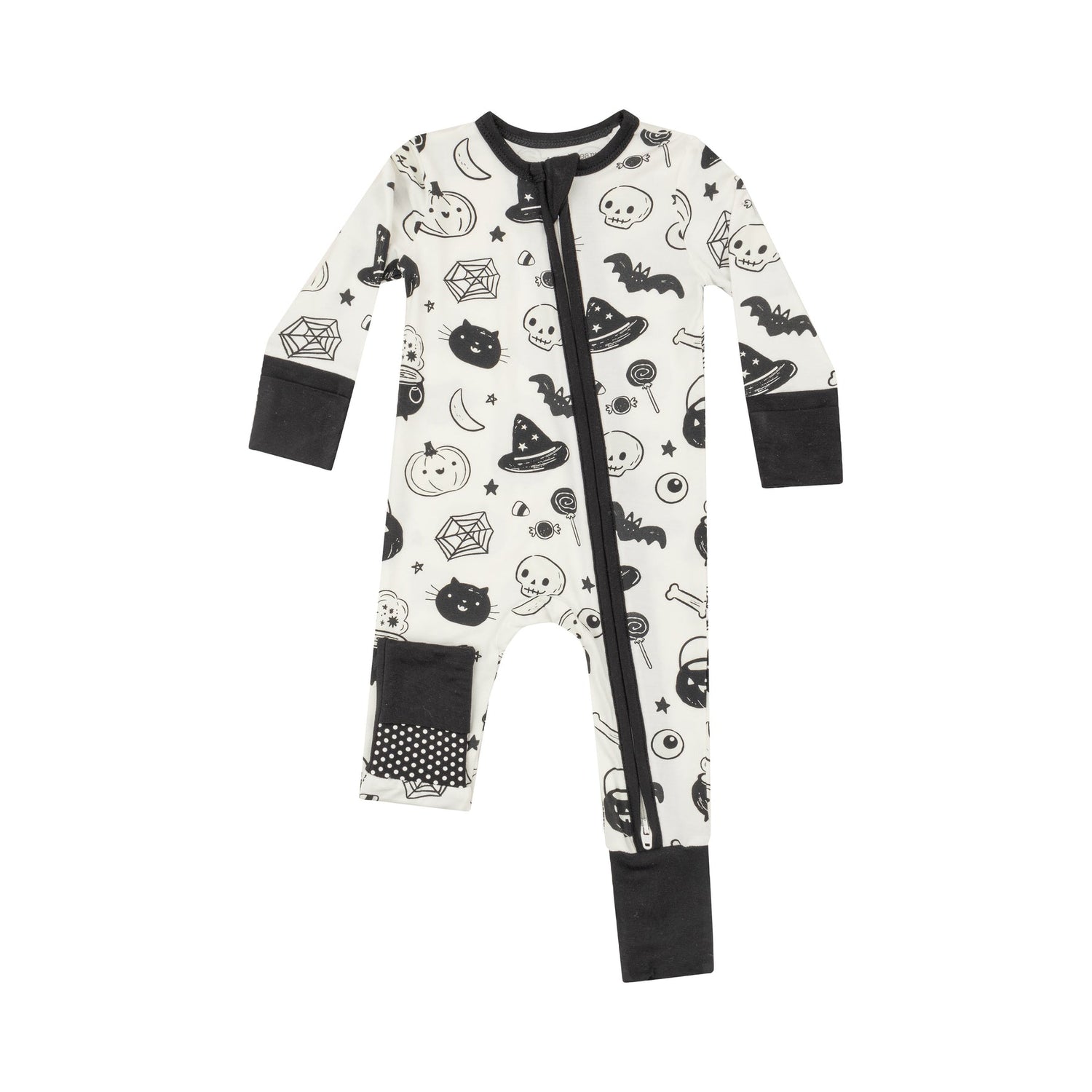 2-Way Zipper Romper - Black and White Halloween by Angel Dear
