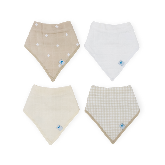 Cotton Muslin + Fleece Bandana Bib 4 Pack - Taupe Cross by Little Unicorn
