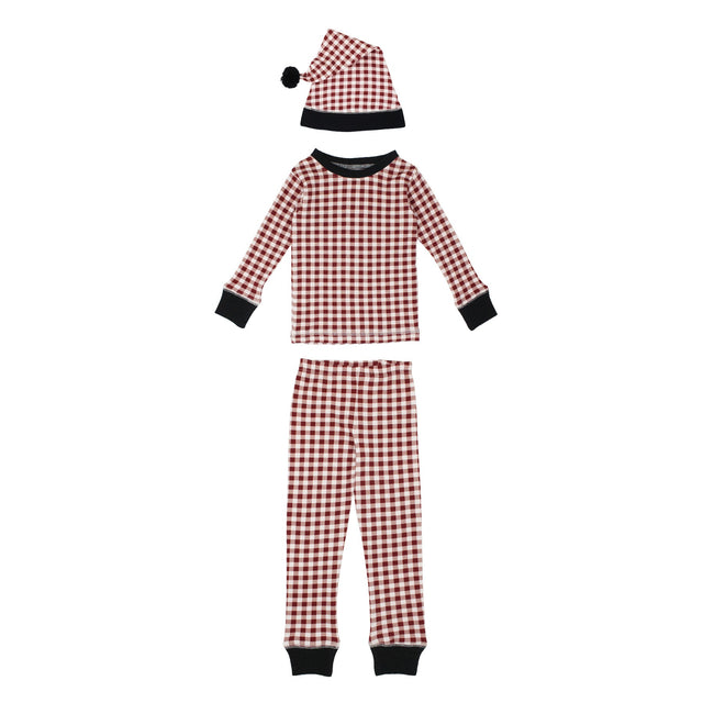 Kids' Organic Holiday PJ & Cap Set in Crimson Plaid by L'ovedbaby