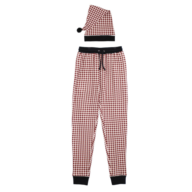 Men's Organic Holiday Jogger & Cap Set in Crimson Plaid by L'ovedbaby