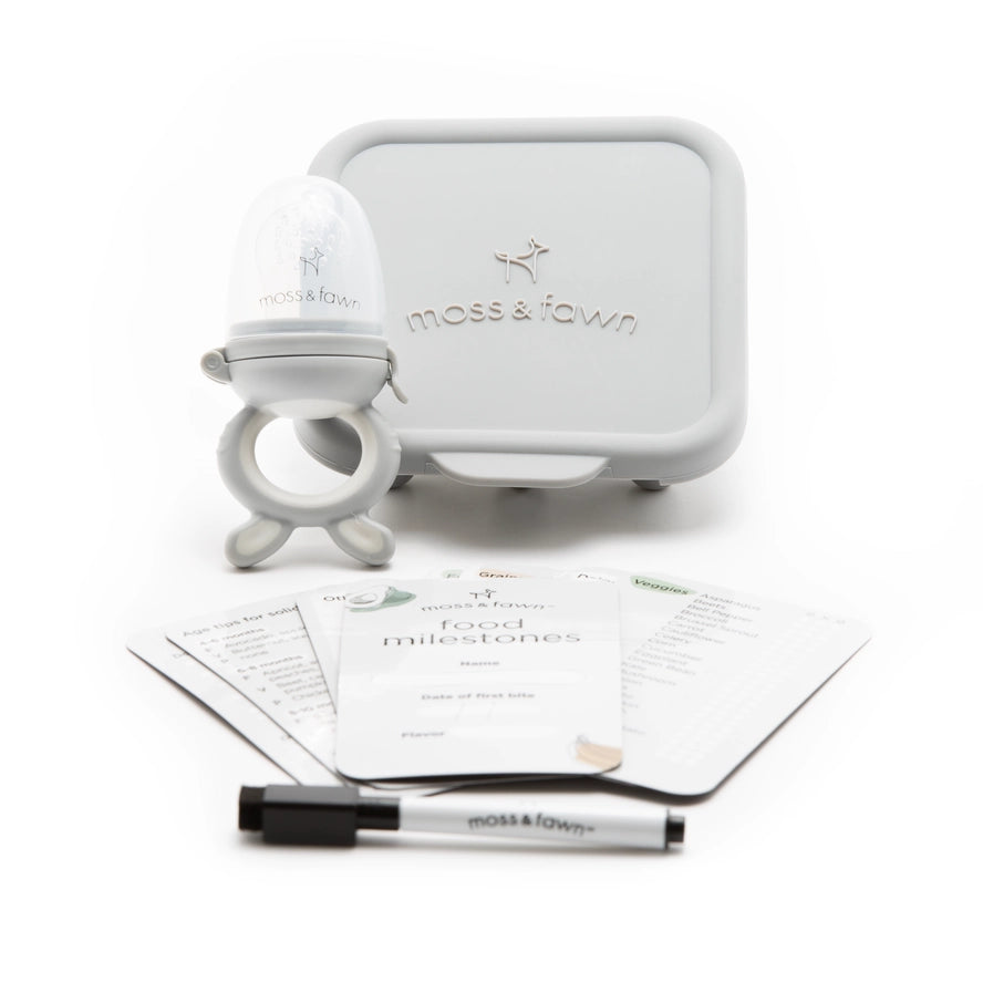 The Moss and Fawn Baby's First Bites Bundle provides a holistic and safe approach to introduce solids to your little one and celebrate developmental milestones! It is the perfect addition to your baby's feeding journey! Geared towards ages 4 months and up, this bundle has everything you need to start your little one on solids. Included is our best-selling: