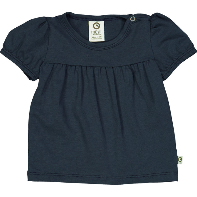 Cozy Me Puff Sleeve T-shirt in Night Blue by Musli - 0/3M is backordered and will ship as soon as it is back in stock.