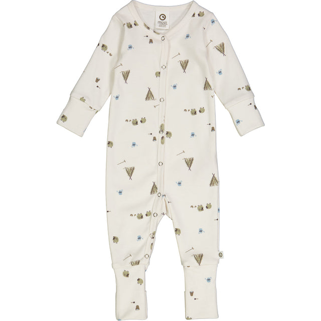 Nice bodysuit with feet and snap closure down to both feet for easier change of clothes.