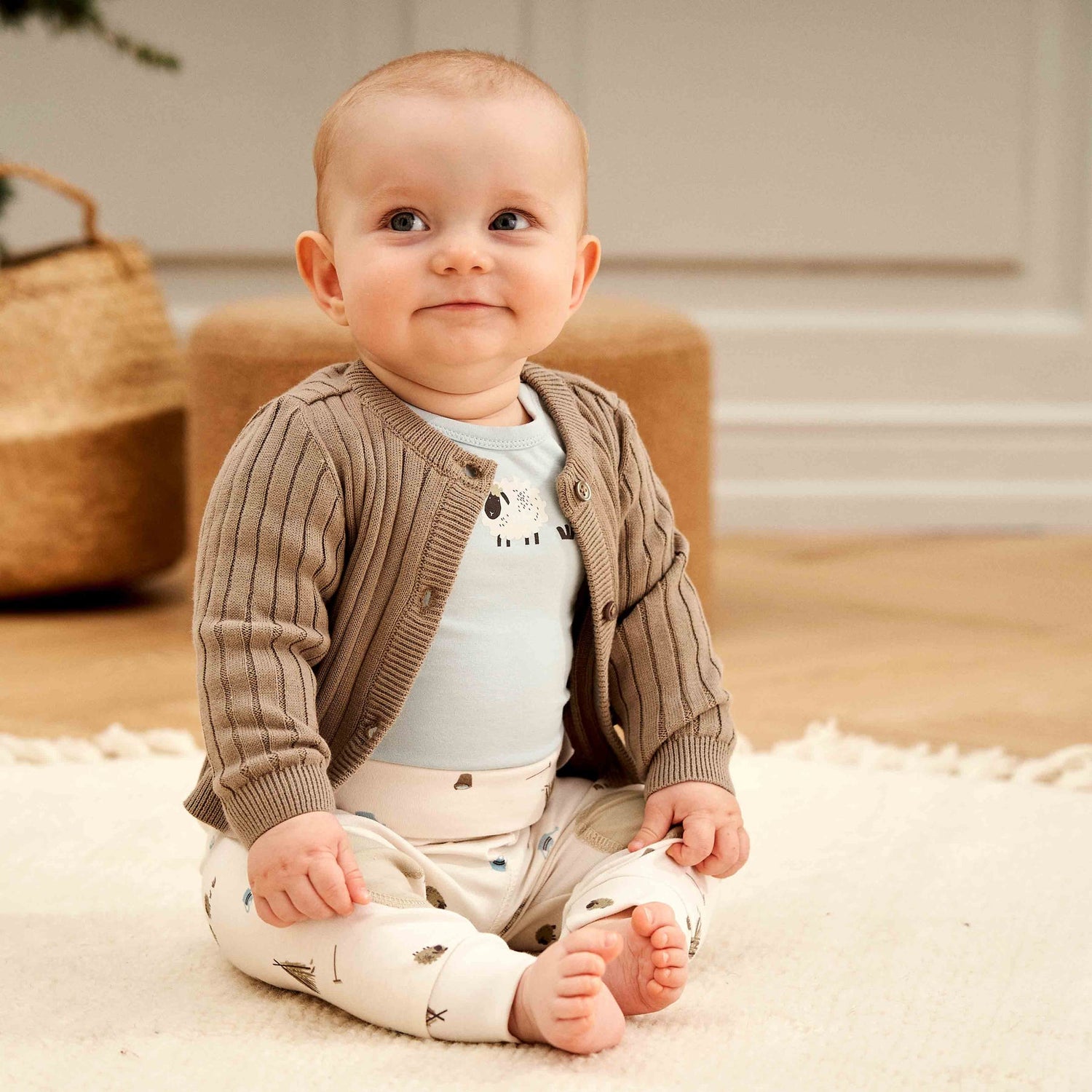 Lovely soft pants with an all-over print of sheep and haystacks.