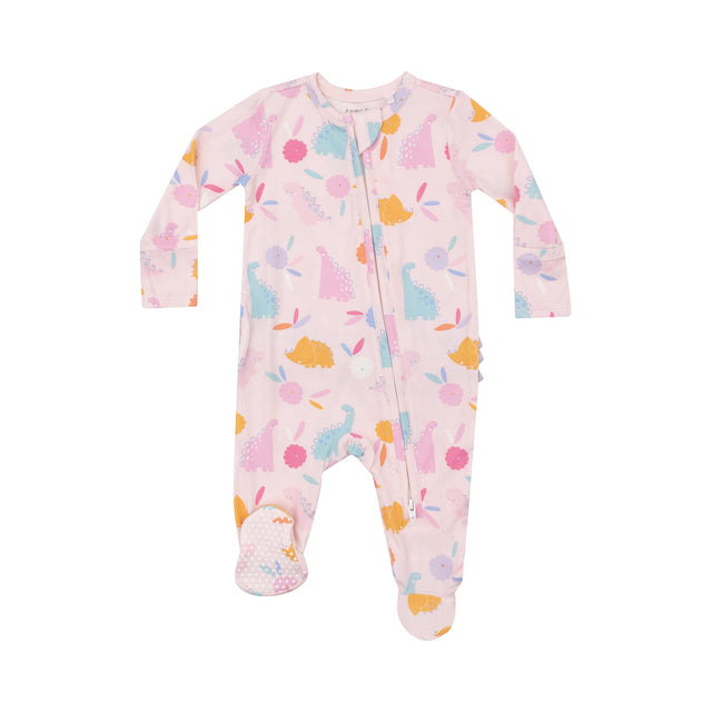 2 Way Zipper Ruffle Back Footie - Floral Dinos by Angel Dear