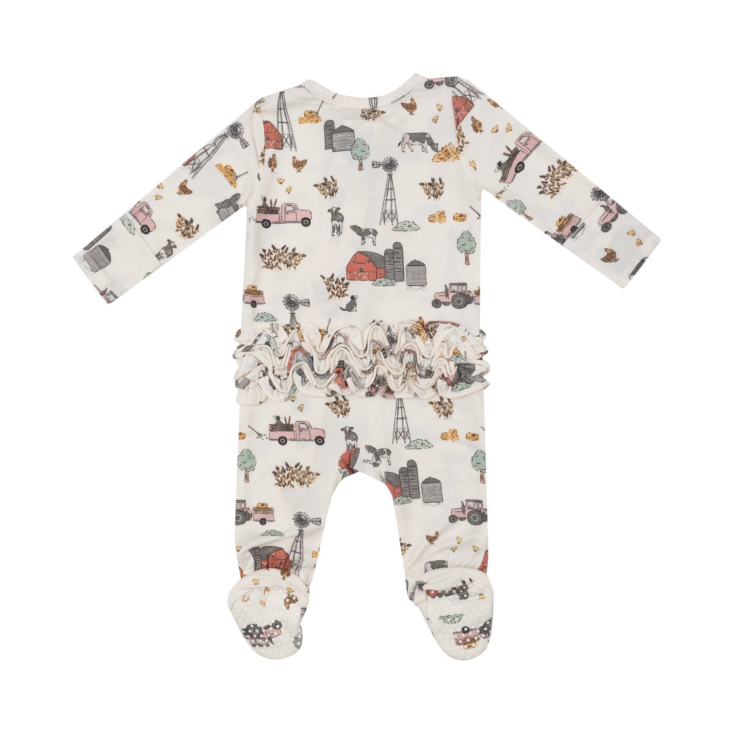 2-Way Zipper Ruffle Back Footie - Hay Farmer Pink by Angel Dear