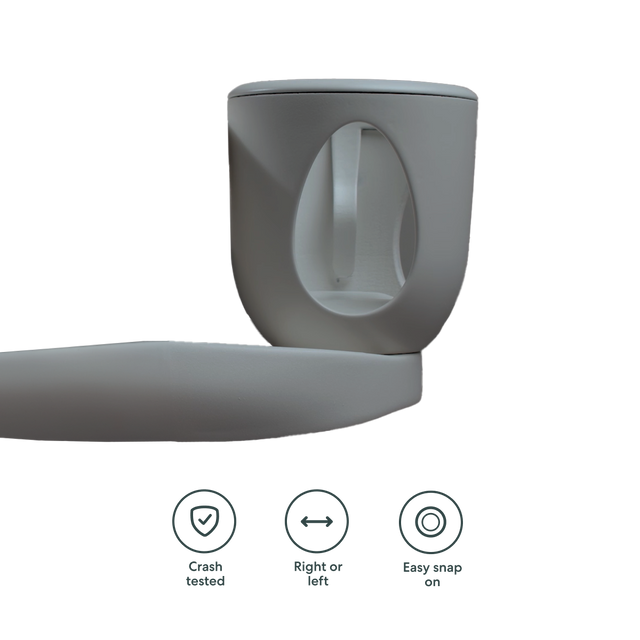 The babyark cup holder was designed to fit on either side of the seat, and features a user-friendly snap-on lock for easy installation, usability and safety. The cup holder is extremely convenient and flexible, can accommodate various container sizes, and can be easily removed by simply rotating and pulling it away.