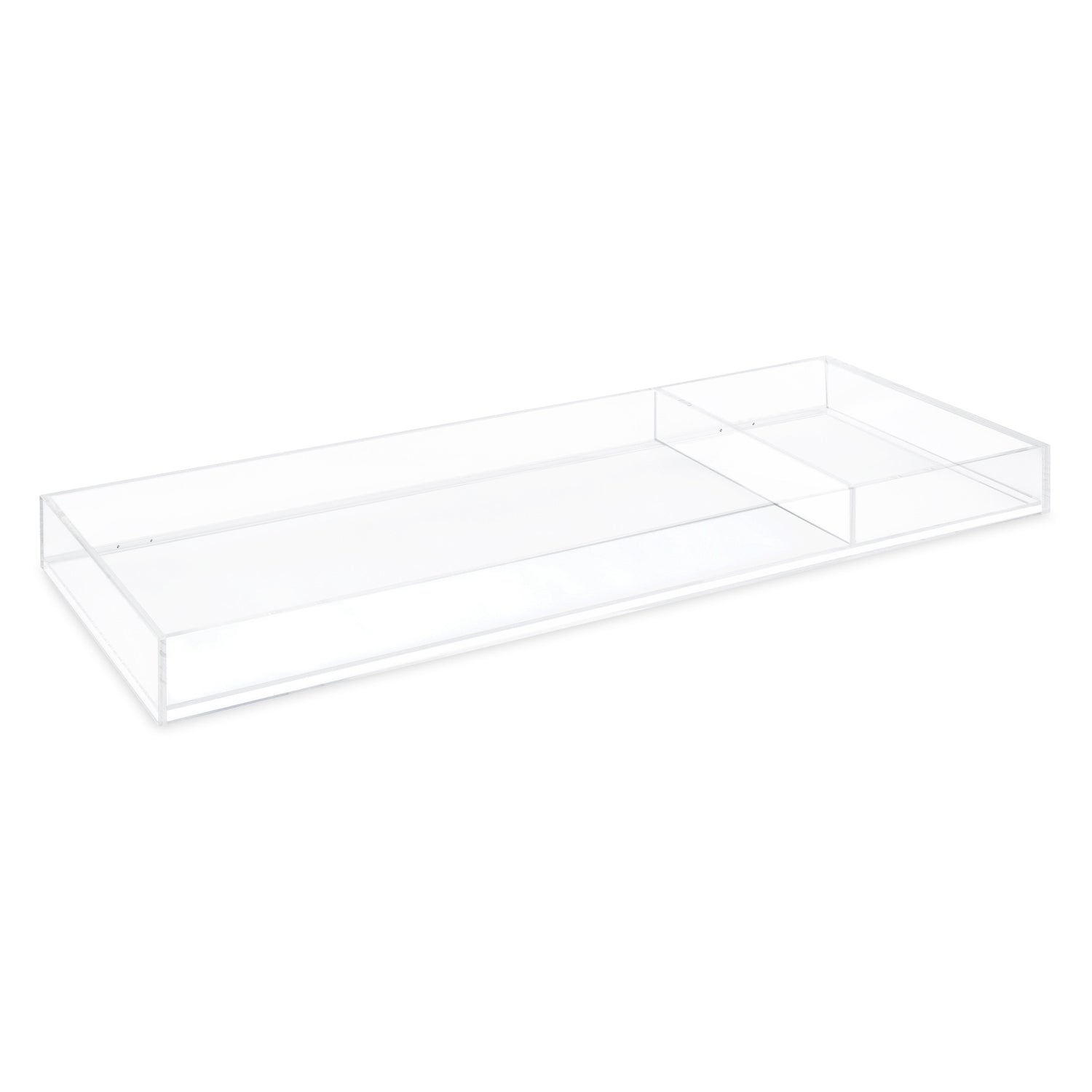 Convert your dresser into a convenient changing table with the Wide Removable Changing Tray in Clear Acrylic The changing tray comes with a smaller compartment to keep baby changing necessities close at hand. As child outgrows its functionality as a changing station, the tray and included safety brackets can be easily removed to reclaim the space on top of the dresser.