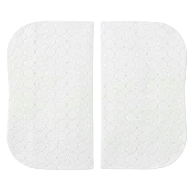 Protect the HALO Bassinest twin sleeper mattresses with these custom designed replacement pads from HALO. These mattress pads features a unique shape to perfectly fit the HALO Bassinest twin sleeper mattresses. The pads have an envelope design to ensure a secure fit that won’t become loose with use. Plus, they’re quilted, with three layers of 100% polyester material that create a waterproof barrier that will help protect the mattresses from leaks and odors.