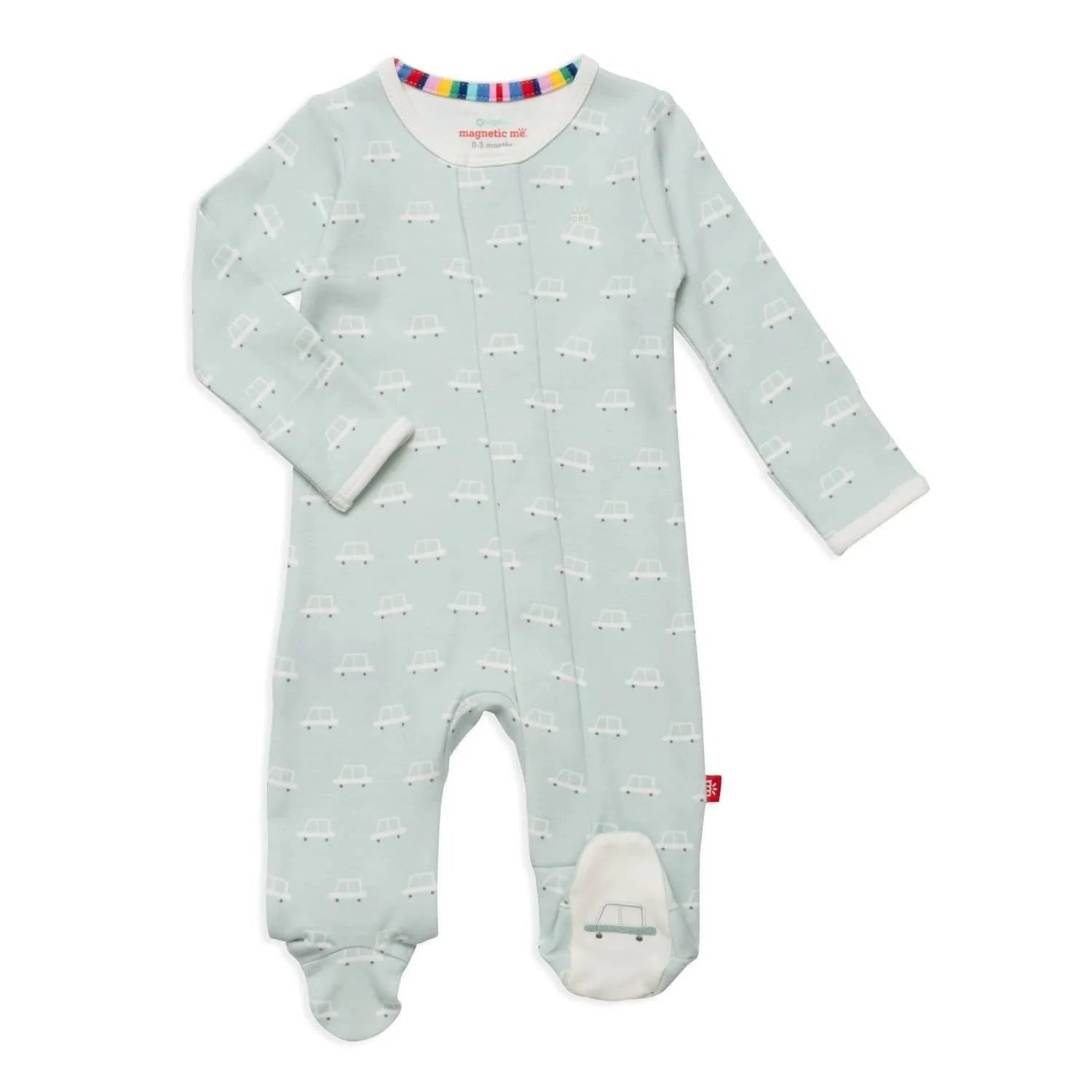 beep beep time for sleep organic cotton magnetic footie by magnetic me