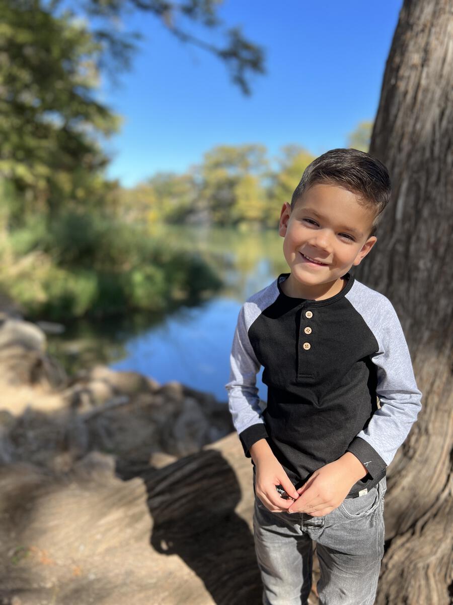 Black/Grey Lugoff Raglan Henley by Me & Henry - 3/4T is backordered and will ship as soon as it is back in stock.