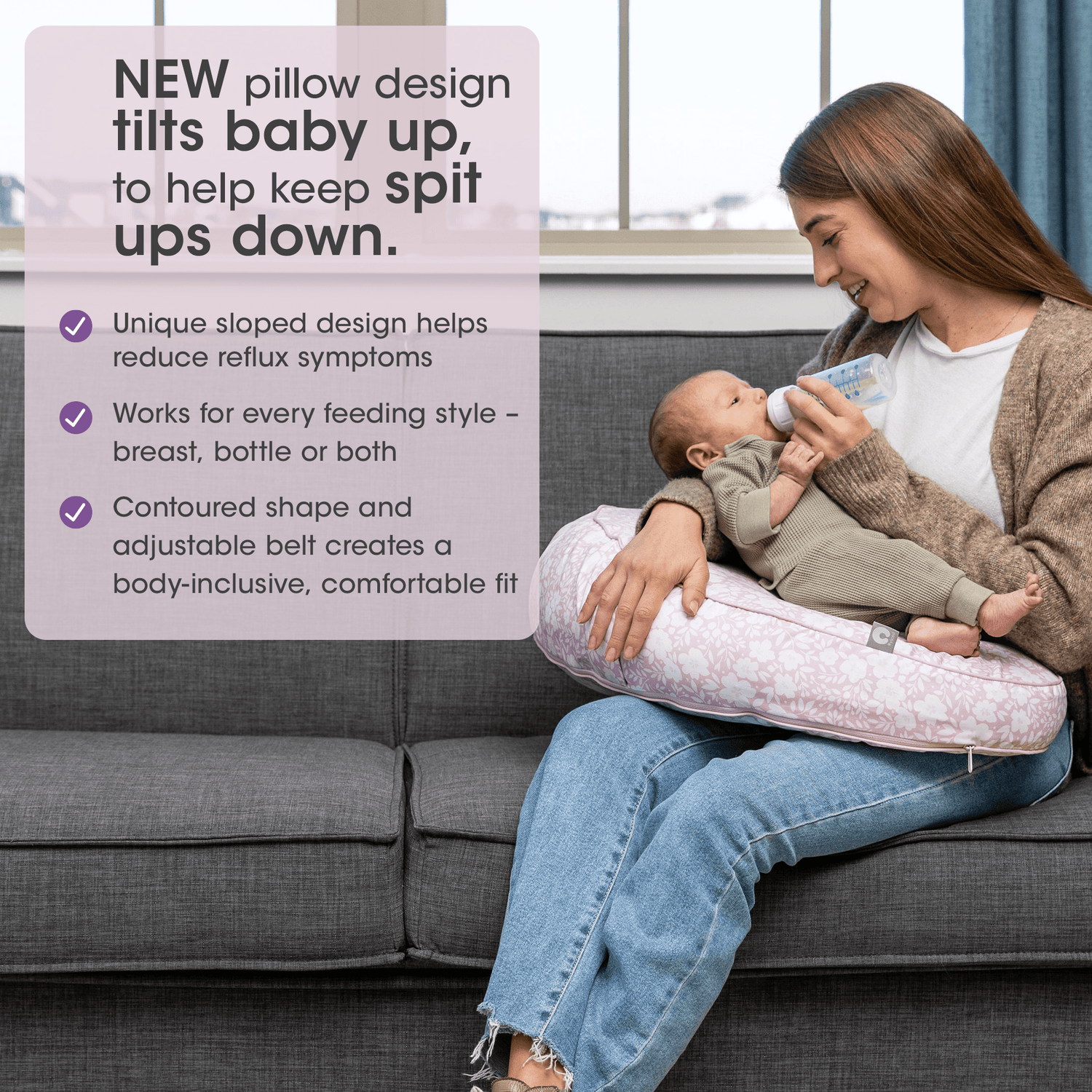 The Boppy Uplift™ Nursing Pillow is contoured to fit every body type, providing optimal support for both you and baby.