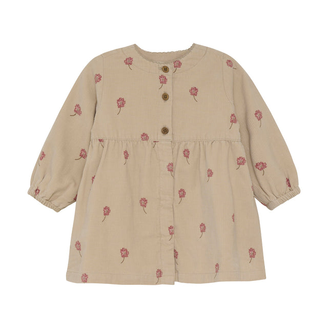 Corduroy Dress- Oxford Tan Flower Print by Minymo