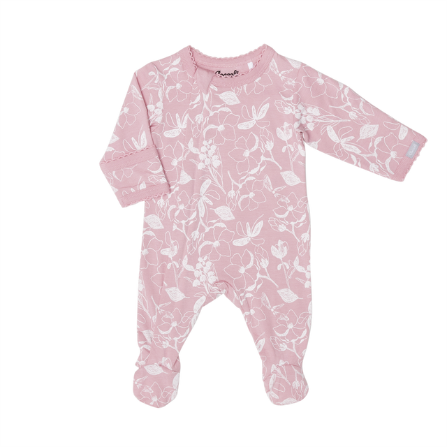 Cotton Modal Zipper Footie in Flowers on Silver Pink by Coccoli