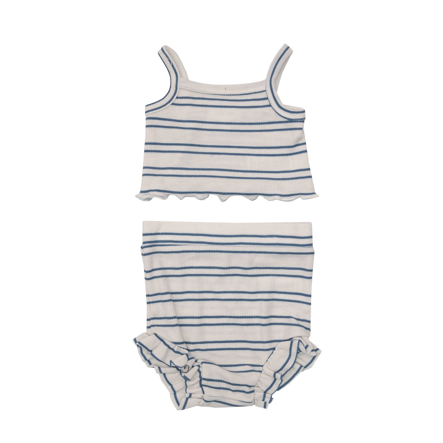 Crop Top & High Waist Short in Blue Stripe Rib by Angel Dear - 3/6M is backordered and will ship as soon as it is back in stock.